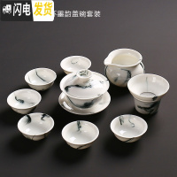 三维工匠陶瓷功夫茶具套装家用现代简约盖碗茶壶泡茶器茶杯套装中式办公室 09款9头反口杯墨韵盖碗套装