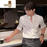 YANXU英伦雅痞风男士衬衫商务高端冰丝立领衬衣男夏季白色修身半袖上衣