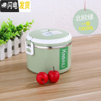 三维工匠不锈钢多层保温饭盒大容量韩国学生便当盒2女3上班族简约套装餐盒 加大款单层北欧绿送餐具