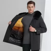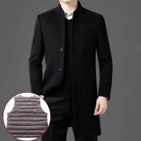 免费试穿 送毛领]冬季中老年男士羊绒毛呢大衣中长款獭兔毛领加绒内胆羊毛呢子大衣尼克服老年送父亲爸爸装外套