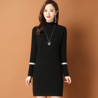 秋冬新款毛衣连衣裙女2024秋冬季半高领配大衣纯色内搭流苏毛衣裙时尚气质针织衫女内搭中长款妈妈装套头打底毛衣裙大码毛衣女