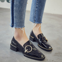 2017春秋新品浅口小皮鞋女英伦学院风金属扣套脚漆皮单鞋粗跟中跟