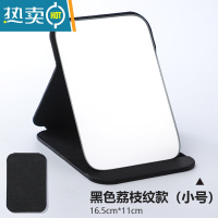 敬平折叠台式便携式镜子化妆镜高清学生宿舍公主女大小号桌面梳妆镜 圆角-小号黑色 11cm*16cm便携式用镜
