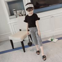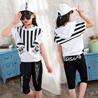 派派猴童装女童短袖套装2018新款黑色夏装体恤中大童休闲时尚夏季两件套潮衣110cm-160cm