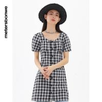 [1件5折价:99.5]美特斯邦威格纹连衣裙女夏季时尚校园风高腰黑色女士裙子