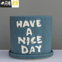 三维工匠粗陶瓷花盆带托盘绿萝吊兰花多肉大号家用室内简约 字母蓝色+配陶瓷托盘 小号直径13cm高14cm花盆容器