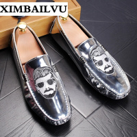 品牌舒适透气软底驾车懒人豆豆鞋男英伦发型师休闲套脚鞋亮皮刺绣潮男单鞋夜店潮鞋子男