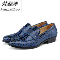 发型师皮鞋男秋冬透气韩版潮尖头男士休闲皮鞋英伦个性蛇皮纹男皮鞋