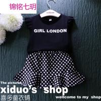 锦铭七玥米豆儿童装 夏装新品女童木耳边飞袖字母背心T恤 波点短裙 套装