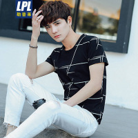 勒普莱2018夏装男短袖T恤纯棉圆领半袖韩版修身汗衫潮条纹体恤个性男士衣服