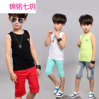 锦铭七玥男童纯棉背心 2016新款夏装 宝宝无袖T恤弹力纯色简洁儿童背心