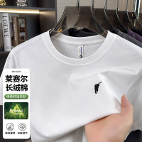 莱赛尔天丝长绒棉短袖男T恤2026夏季新款圆领时尚刺绣马标男士T恤