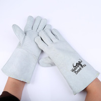 电焊手套加长牛皮焊工手套耐磨隔热牛皮双层加厚劳保焊接手套无字白挂里均码