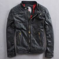 男装皮外套做旧头层小牛皮皮衣修身收腰款真皮皮夹克做旧色