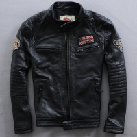服装精品头层小牛皮皮夹克男式机车外套立领加厚真皮皮衣黑色