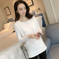 薇侣2017新品实拍秋装韩范中长款白色长袖T恤女学生时尚圆领春
