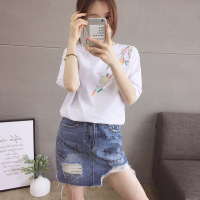 薇侣2017新品2808#实拍现货奥戴尔棉蝙蝠袖宽松版型星星印花文艺范短袖T恤女
