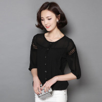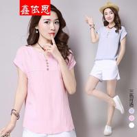 鑫依思 新款韩版小衫百搭V领棉麻衬衫女短袖T恤夏韩范宽松上衣G342