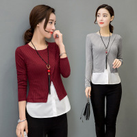 薇侣2017新品韩范时尚不对称拼接假两件套头衬衫春秋新款打底T恤衫潮