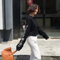 薇侣2017新品秋韩范BF原宿风ulzzang情侣中长款朋克长袖印花宽松T恤女