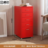 戴劲钢制文件柜带轮多抽档案柜资料柜铁皮办公柜家用储物柜红色五抽
