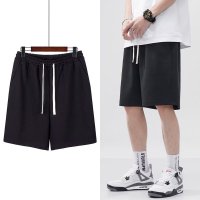 简约纯色编织抽绳运动短裤男女潮牌街头宽松阔腿五分卫裤