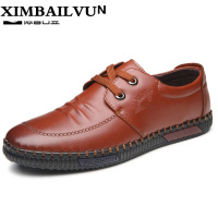 品牌2017英伦都市男士休闲皮鞋中青年日常休闲平底舒适柔软皮鞋系带耐磨潮流百搭瓢鞋