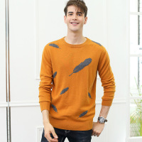 山羊绒衫男圆领时尚提花毛衣宽松针织打底衫套头上衣拼色内搭打底