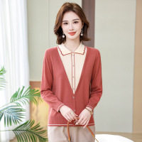 春秋新款中老年妈妈装翻领针织衫时尚假两件百搭上衣薄款女装毛衣