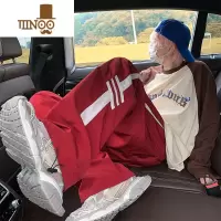 YANXU美式复古hiphop裤子高街红色拼接条纹运动裤男宽松直筒垂感阔腿裤