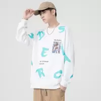 男装长袖卫衣秋冬季新款韩版潮牌男士宽松落肩印花圆领情侣装