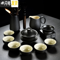 三维工匠黑陶粗陶功夫茶具套装家用简约实木竹茶盘复古茶壶盖碗茶杯 黑陶盖碗带茶道11头 10件