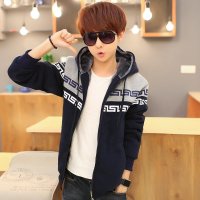 丹杰仕 2015秋冬新款男孩子青少年装学生加绒加厚卫衣外套上衣连帽秋冬韩版潮流休闲百搭小咖秀百搭潮
