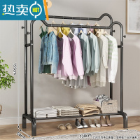 敬平晾衣架落地折叠室内晒衣架阳台卧室挂衣架子家用简易单杆式衣帽架 磨砂黑-110cm+双侧钩-猫耳双杆 大