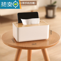 敬平纸巾盒抽纸盒家用客厅厨房创意桌面多功能餐巾纸盒子遥控器收纳盒 大号长方形纸巾盒[带手机凹槽]
