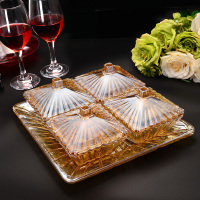 玻璃干果盘 分格带盖水果盘子 糕点糖果收纳盘欧式含托盘果盘套装