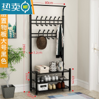 敬平晾衣架落地家用门厅挂衣架卧室简易鞋架室内收纳凉晒衣服衣帽架子 置物板款-大号黑色加厚 大