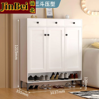 锦北家用钢制鞋柜带抽屉入户门储物柜子大容量铁艺收纳柜-三门压型