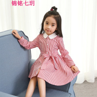 锦铭七玥18女童春秋季新品韩版条纹长袖开衫蝴蝶结太阳裙中大童公主连衣裙
