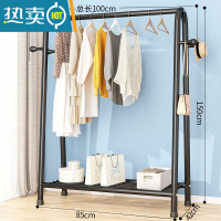 敬平衣架家用落地卧室挂衣简易单杆式铁艺晾衣架多功能室内阳台晒衣架 100CM+置物网+单树杈(经典黑) 大