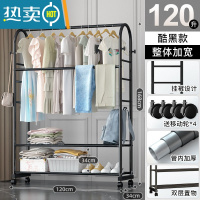 敬平晾衣架落地阳台晒衣服架子室内晾衣杆挂衣服架子可移动家用衣帽架 [升级版·120cm]酷黑-双层款+挂裤六杆 大