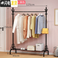 敬平室内简易晾衣架落地卧室凉晒衣服架子单杆式加粗挂衣架阳台衣帽架 黑色120长双侧衣帽架+置物板