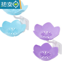 敬平肥皂盒免打孔香皂盒花朵双层沥水壁挂式皂盒浴室洗衣肥皂架创意盒 流水生财[粉色+紫色]