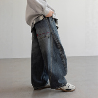 男童加绒裤子秋冬款新款儿童冬装宽松一体绒直筒牛仔裤男孩潮
