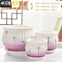 三维工匠花盆陶瓷大号特大号肉肉个性家用创意绿萝多肉花盆 紫色熏草小花三件套 大花盆容器