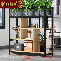锦北铁艺置物架绿植花架隔断收纳架办公室装饰架长100cm黑架+浅胡桃
