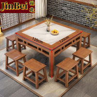 锦北八仙桌家用四方桌中式正方形餐桌椅组合 120cm岩板翘凳花梨色