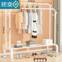 敬平衣架家用落地卧室挂衣架简易小型晾衣服架房间收纳器角落置物架 小号款 [单层储物+挂衣] 白色 滑轮*4晾晒架