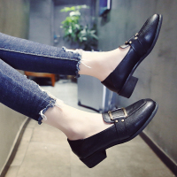 方头复古小皮鞋粗跟女鞋秋季新款韩版百搭英伦风方扣中跟鞋子