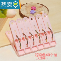 敬平30个装旅行晾衣夹子防风多用途晾晒带绳晒衣服夹子户外强力家用夹 浅粉色夹子40个装